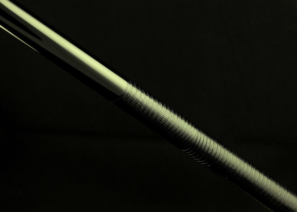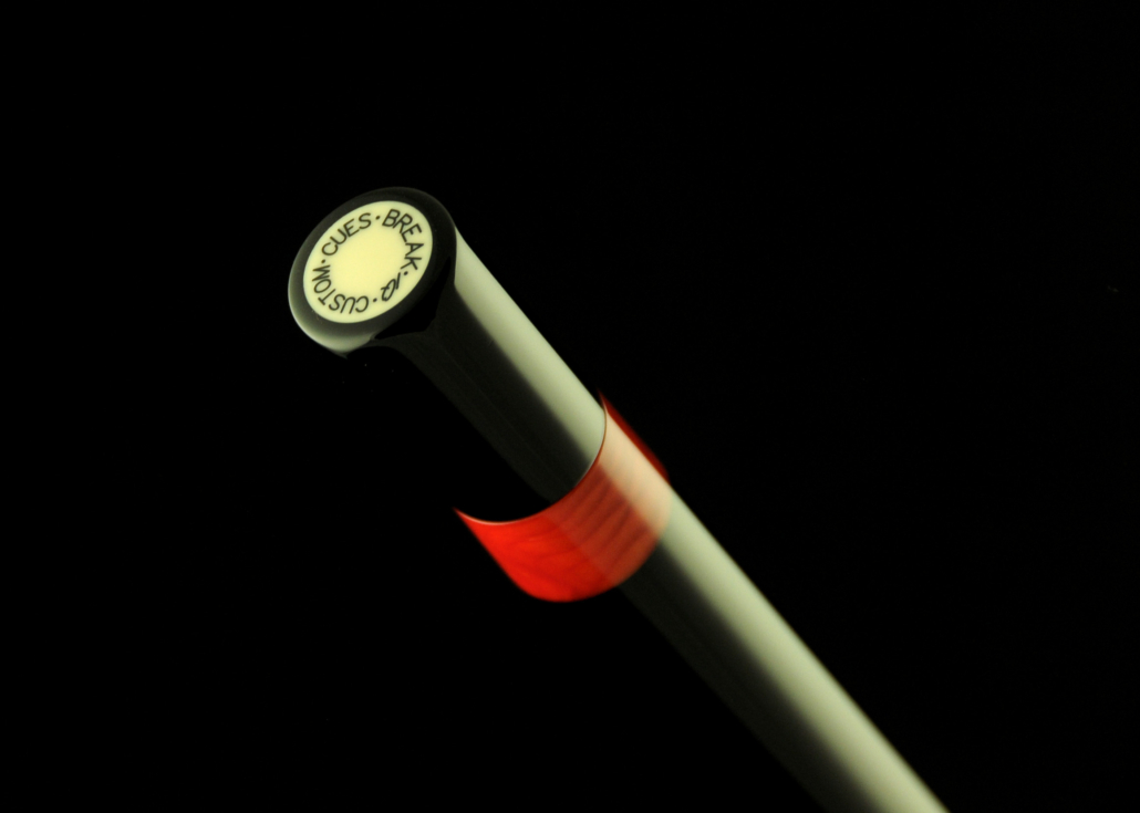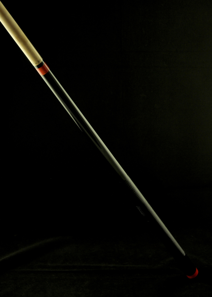 Break cue stained black with lizard print leather wrap