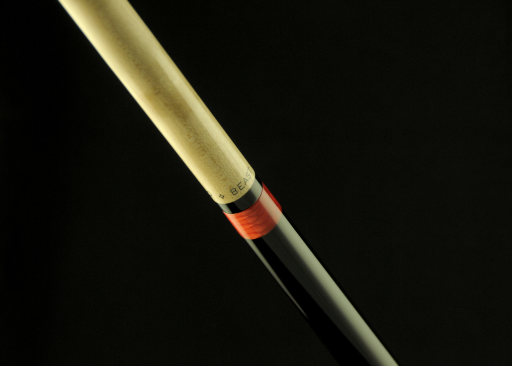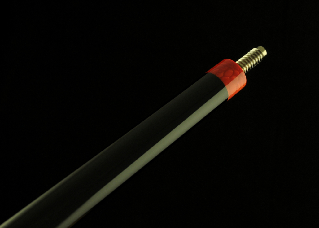Break cue stained black with lizard print leather wrap. Juma magma dragon (red colour) joint and buttcap. Custom titanium 3/8-11 joint pin.Coming with IQ beast break shaft with tip diameter 13.20 mm and phenolic tip. Matching joint protectors. This cue has car finish and ceramic